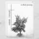 This memorial card has a dark modern and elegant design with a white border around the front and back. In silent mourning - tree on a meadow.