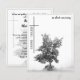 This memorial card has a dark modern and elegant design with a white border around the front and back. In silent mourning - tree on a meadow.