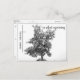 This memorial card has a dark modern and elegant design with a white border around the front and back. In silent mourning - tree on a meadow.