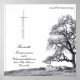 This memorial Poster has a dark modern and elegant design with a black border around the front. In silent mourning - tree on a meadow.