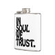 The flask itself is fine. It’s a cheap flask, obviously bought in bulk, however am prepared to overlook that. Given that it is a personalized item, I would have liked to have seen gift boxing instead of the generic packaging. Terrible printing, and/or quality. It’s a cheap, tacky vinyl. It is not cut straight and is also applied in a way that it is overhanging the bottom, causing the glue to catch on items and it will eventually roll and tear, damaging the wrap.