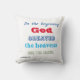 Affirm your belief in creation. The Old Testament bible scripture text of Genesis 1:1 "In the beginning God created the heavens and the earth" in bold and colourful red, blue and green lettering on a plain white background, giving it a beautiful clean, simple and elegant look.