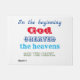 Boldly affirm your belief in creation. The Old Testament bible scripture text of Genesis 1:1 "In the beginning God created the heavens and the earth" in bold and colourful red, blue and green lettering on a plain white background, giving it a beautiful clean, simple and elegant look.