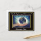 This christian vintage Genesis one In the beginning God created. With a black and gold frame postcard. Has a Colourful vibrant Christian space design. With beautiful planet held in a hand. Looking like space clouds.The Bible verse Genesis one In the Beginning God Created.