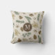This monogrammed evergreen forest pattern outdoor throw pillow features a scattered pattern of pine cones, evergreen sprigs, leaves and acorns in green, brown and gold on an off-white background - by katz_d_zynes | part of katzdzynes' In the forest collection >> https://www.zazzle.com/collections/119134716201746098