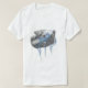 This t-shirt design is a digital painting of a hand delicately holding a wave while a surfer rides the wave.