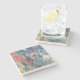 The coasters are gorgeous, a quality feel and heavy weight. They look like a precious archeological find. A rustic stone juxtaposed with a modern floral black and white print. I like the way the print goes slightly imperfect on the cut stone edges giving them a kind-of natural beauty.