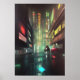 In the street at nighttime, you can see cars in the street and skyscraper in the background . This is a AI generated art piece