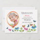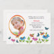 A sweet design for a sweet little girl. The white background has a dainty, dotted, pin stripe and colourful flowers and butterflies. The photo window is oval and double framed. (VM)