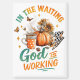 Peaceful, colourful design featuring a fall / autumn scene with a pumpkin, cup of coffee, butterflies, and fall flowers. The colourful inspirational text reads: "In the waiting God is working". This design is available on a wide variety of products.