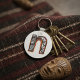 The letter n done in Inca style with Inca art inside the letter. This design looks really effective on these Keychain