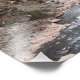 Photo print of the blue train of the Inca rail running from Cusco towards Machu Picchu through the Sacred Valley or Urubamba Valley with big mountains and Urubamba river in Peru.