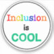 Inclusion is COOL, rainbow letters and rainbow border.