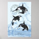 Incredible Black and White Watercolor Orcas Poster