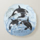 Incredible watercolor orcas art of swimming and jumping orcas and a baby orca with water splashes and waves.