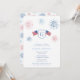 This birthday party design features watercolor red and blue fireworks against a white background and a blue and white crest with space for baby's initial monogram. This is flanked by watercolor USA flags. Watercolor elements were originally handpainted by me before being scanned into digital form (the crest is by another artist)