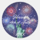 Unique and beautiful fireworks in red, white, and blue with the Statue of Liberty and “Happy 4th of July” to celebrate Independence Day.
