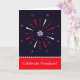 Celebrate Freedom is the sentiment on this Independence Day, 4th of July greeting card. It features a graphic illustrated firework composed of geometrical shapes in red white and blue on a dark blue background. Blue and white polka dots separate the blue from red bar along bottom.