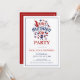 Independence Day Simbols party invitation with custom text in red and blue on a white background. Food, fun, and fireworks.