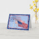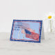 With a blue sky background, the card has three American Flags and a star border. Bright and cheerful to celebrate our nation's birthday.