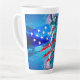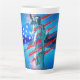 The Statue of Liberty stands prominently with vibrant fireworks illuminating the night sky in the background. Stylised red and blue stripes along with star patterns evoke a patriotic theme. Independence day. Freedom. United States of America Birthday. Digital Art