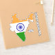 India Flag Charming Patriotic Map Sticker in the outline of the India map. The map is infused with the pattern and the colours from the India national flag. Small stickers with the country name are also included. Text is fully customisable using "Customise it!" feature. India map sticker is the perfect sticky gift that can be placed anywhere your heart desire. © 2023 CoutriesOfTheWorld