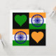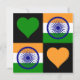 Cute square India greeting cards for proud Indian people. With the a unique chequered pattern made from red hearts and the Indian national flag. Works great as an invitation for patriotic Indian celebrations, reaching out to friends and family in India, or for patriotic arts and crafts projects!