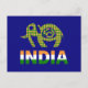 A stylised, vector picture of a pregnant elephant. The word India is displayed in the colours of the stripes from the indian flag. The elephant is painted in these colours also. The national flag of India, orange / India saffron (Kesari), India green, white, and navy blue