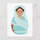 This postcard features my Indian (Aqua) matryoshka (aka- babushka, nesting doll, Russian doll, stacking doll), an original drawing by me, Amy Perrotti. My matryoshka drawings celebrate women and girls of all ethnicities and nationalities. This is a new version (older version did not show hand).