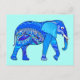 Postcard in a richly embellished Indian elephant, in an arabesque pattern, in shades of cobalt blue and turquoise