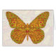 Henna brown lines filled with bright pink, green, yellow, and orange, inspired by the vibrantly coloured saris of India, create mehndi patterns across the wings of this monarch butterfly.