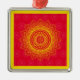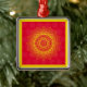 Beautiful Indian round lace ornament design in yellow frame on red background