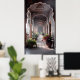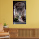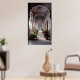 Passage of Serenity” captures the timeless beauty and tranquil atmosphere of an Indian architectural corridor bathed in soft golden light. Ornate arches adorned with intricate floral motifs frame a walkway lined with potted plants and blossoming flowers, leading the eye towards a lush garden beyond. The warm sunlight filters gently through the carved pillars, casting elegant shadows across the terracotta tiles. This artwork evokes a sense of peace, history, and quiet reflection — a perfect balance of nature and craftsmanship that invites viewers to pause and breathe in the calm of this sacred space.