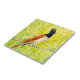 Ceramic Tile featuring colourful bird sketch. Indian Paradise Flycatcher, tropical bird sitting on a tree branch, colourful yellow green leaves and flowers as a background.