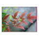 Autumn or Holiday greetings - slender leaves turning red, accented with dewdrops on a foggy morning.