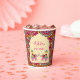 Playful Indian wedding elephants pink mehndi paper cups personalised name mehndi paper cups, pink cerise rangoli pattern background, cute wedding elephants monogrammed paper cups for your tea station customised paper cups for mehndi celebration Indian wedding paper cups personalised Indian wedding decor Mehndi tableware