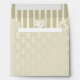 Champagne coloured silk damask background, ornamental borders and gem hearts make your wedding invitation special.