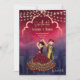 Indian wedding save the date cute bridal couple, dark blue maroon background with fairy lights and dancing Indian bridal couple save the date card.