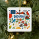 Commemorate your trip to the state of Indiana with this modern keepsake Christmas ornament, featuring hand-drawn style illustrations of iconic food, animals, landmarks, landscapes, and culture. Personalise the back to mark your US adventure and create a memory you'll hang up on the tree for the Holidays year after year.