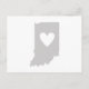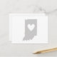 Keeping in touch with a Indianan you love has never been easier then with a Indiana state shape filled in with solid grey background and a heart cutout postcard.