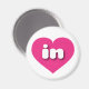 This magnet features a vibrant hot pink heart containing the bold, white, rounded lower case letters in, a playful abbreviation for Indiana, the hoosier state.