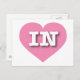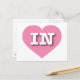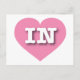 This postcard features a vibrant pink heart containing the bold, white, upper case letters IN, the official abbreviation for Indiana, the hoosier state. The reverse side of the postcard is blank, awaiting your customised text or handwritten sentiments.