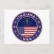 Badge of Indiana design with flag of USA and flag of Indiana colours, rounded shape.