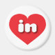 This magnet features a vibrant red heart containing the bold, white, rounded lower case letters in, a playful abbreviation for Indiana, the hoosier state.