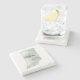 The coasters are gorgeous, a quality feel and heavy weight. They look like a precious archeological find. A rustic stone juxtaposed with a modern floral black and white print. I like the way the print goes slightly imperfect on the cut stone edges giving them a kind-of natural beauty.