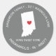 Unique State of INDIANA New home address label sticker set on a grey background with a red heart & aeroplane.