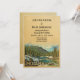 A unique vintage Indiana wedding invitation in mid-century style featuring a beautiful nature scene with forest trees, snow and a stream river or brook flowing by a small mountain. Celebrate your Indiana destination wedding with this charming Indiana wedding invite. Perfect for camping weddings and outdoor ceremonies.