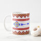 Show your Indigenous pride with this sienna, white, turquoise, and blue mug by Chained Dolls.