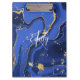 Indigo Blue Agate Marble Abstract Name Monogram Clipboard