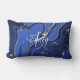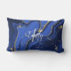 Indigo Blue Agate Marble Abstract Name Monogram Lumbar Cushion